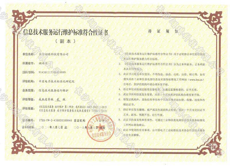 ????? ? ? 長沙翊琪科技有限公司近幾年來一直致力于改進運維服務(wù)手段,提高運維服務(wù)水平,改善運維服務(wù)質(zhì)量。2021年3月19日,長沙翊琪科技有限公司ITSS運維服務(wù)能力...