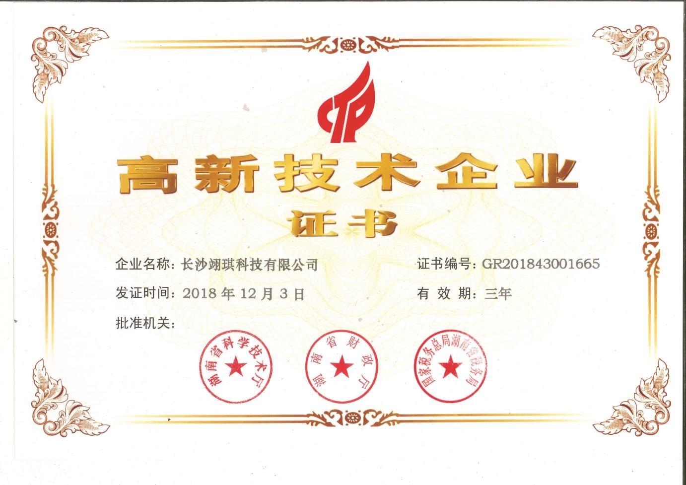 熱烈祝賀長沙翊琪科技有限公司榮獲 “高新技術(shù)企業(yè)”認證